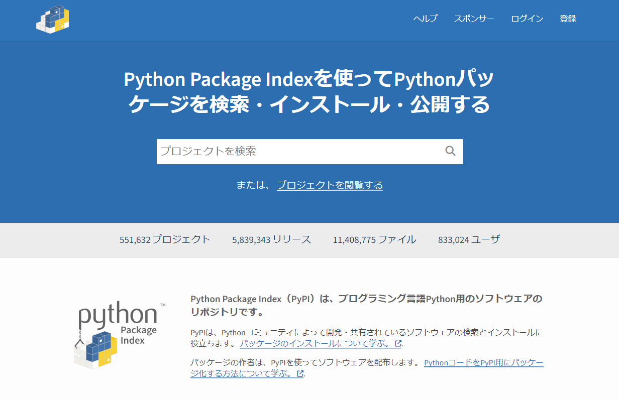 サードパーティ製パッケージは PyPI (the Python Package Index、パイピーアイと読む)というサイトで情報が共有されています。
